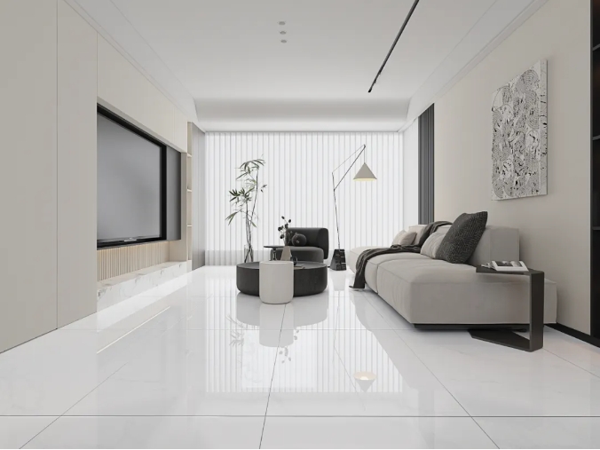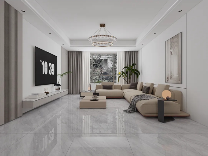 突破传统瓷砖的二维表达,以三层纳米釉料+全抛釉工艺,构筑立体光感矩阵,经1280度高温淬炼,凝结98度水晶光感,让釉面在